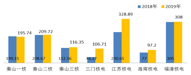 中国核电2019年度核电机组厂用电率6.74%,与2018年水平相当。机组平均利用小时数7134小时,机组利用小时数较2018年低307小时。若剔除三门核电2号机组停机小修影响,机组平均利用小时为7562小时,比2018年高121小时。